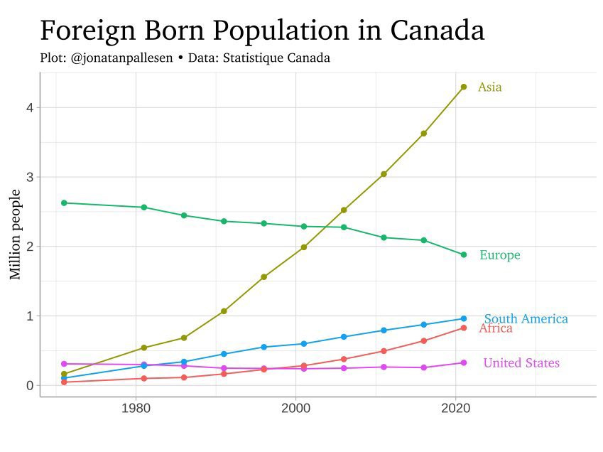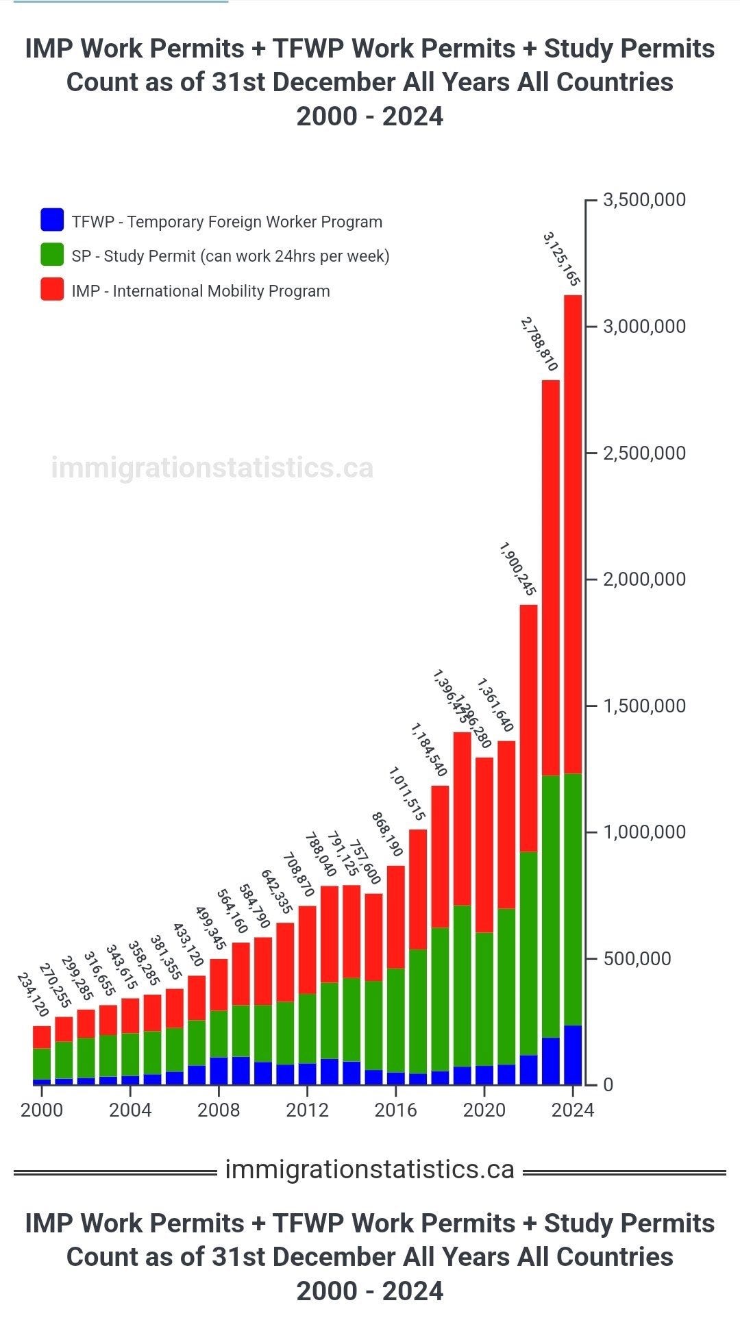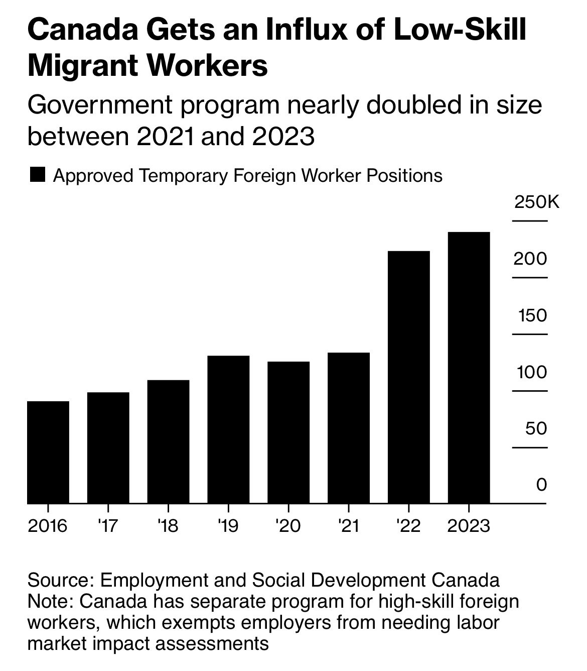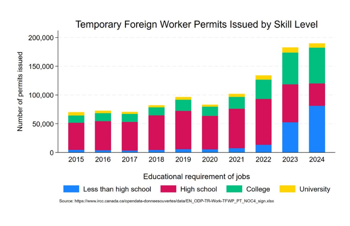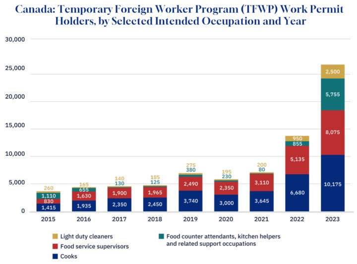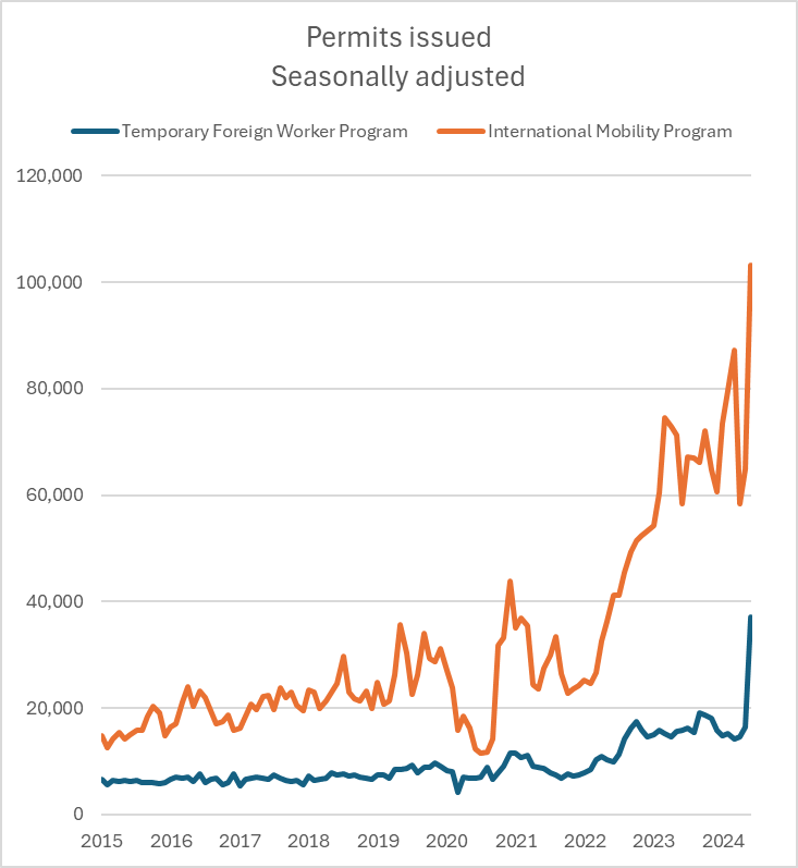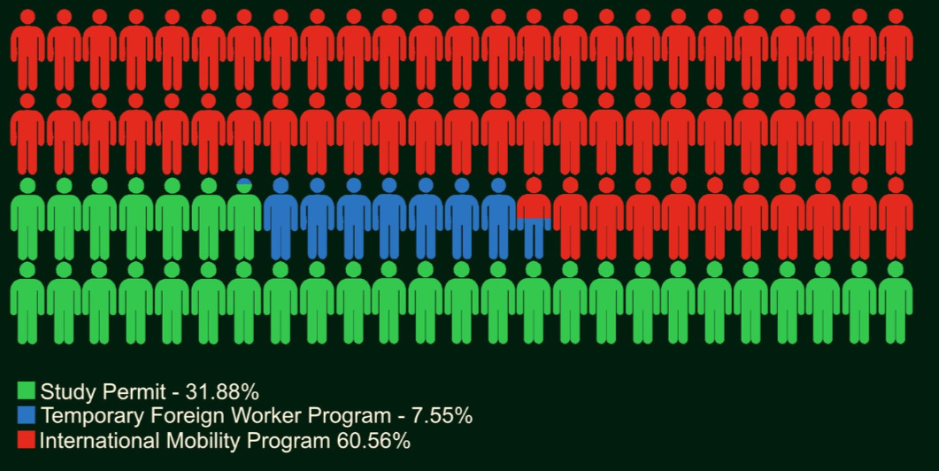 The TFW gets lots of heat, but if you look at who is actually coming into the country, TFWs are a relatively small part. Most newcomers are students and “International Mobility Program” migrants.