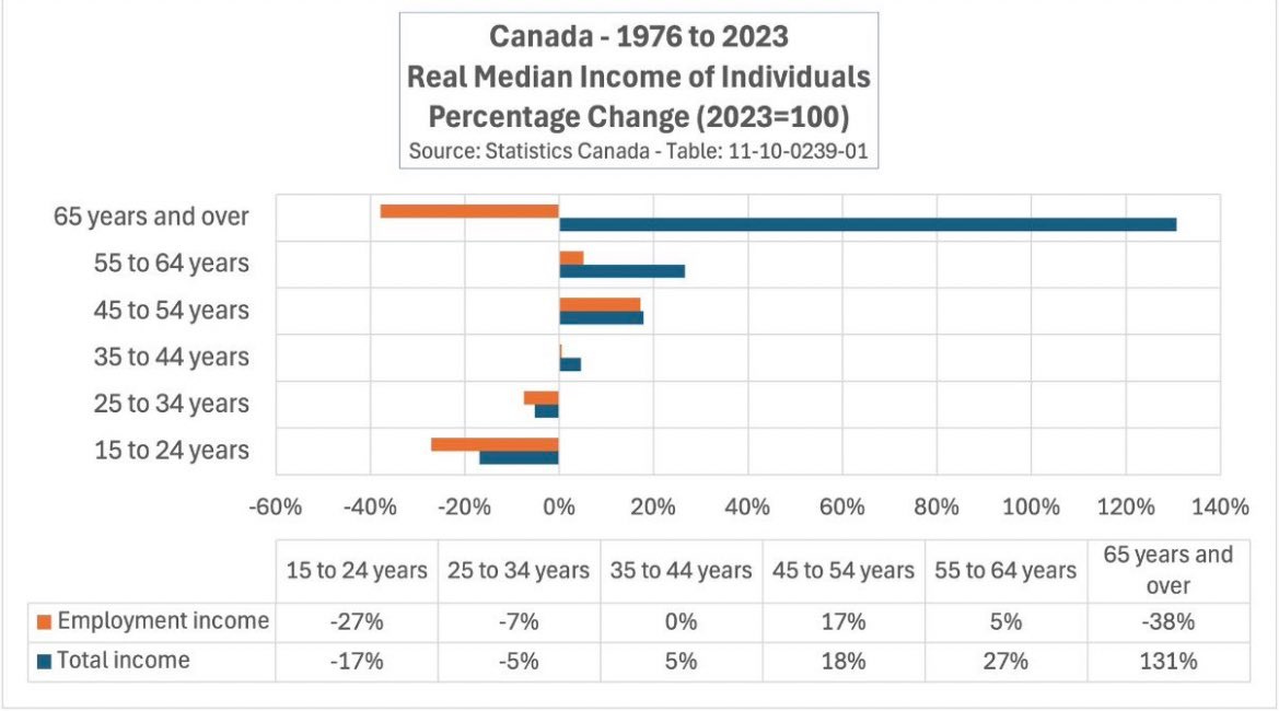 Older Canadians have gotten wealthier, younger Canadians have gotten poorer.