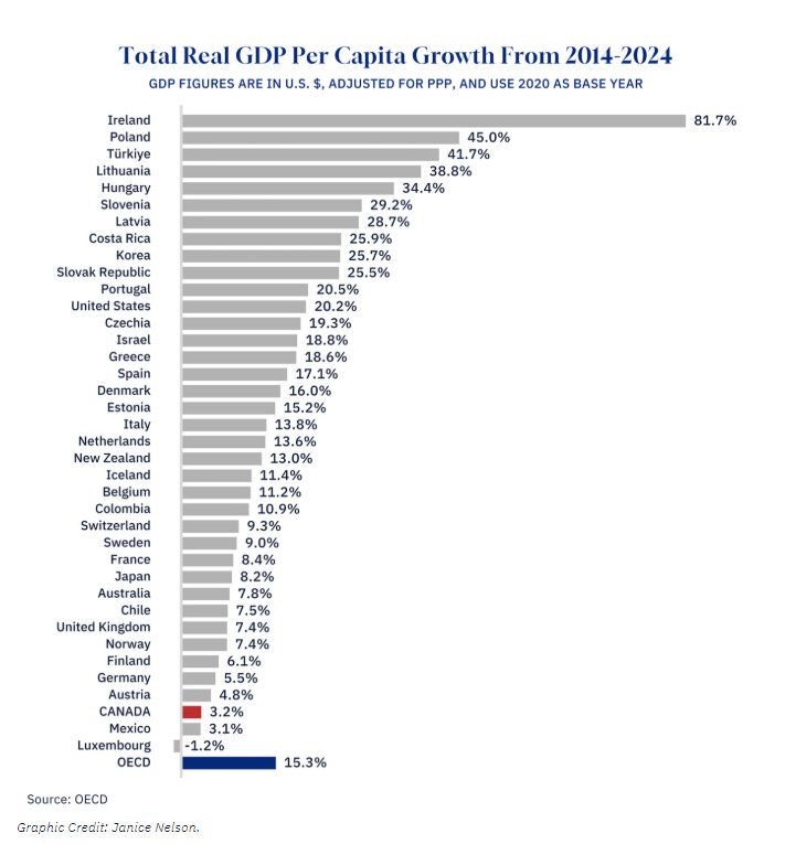 As an ex Canadian who moved to the US 40 years ago i am saddened by the downturn in the standard of living in Canada- all due to economic policies and excessive govt debt and taxation and now inclusive of a woke central government. Sad!