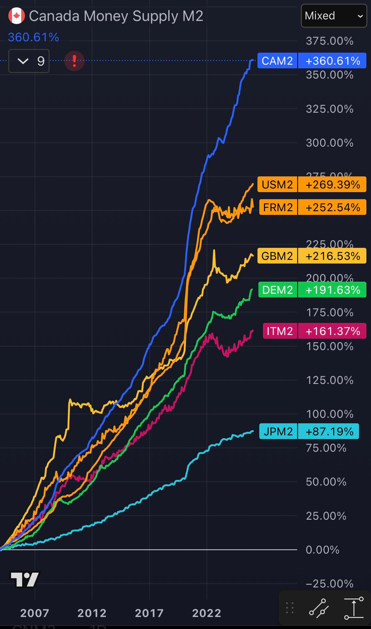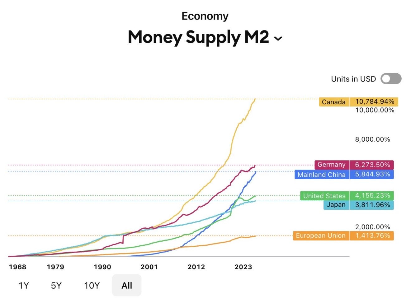 While every other G7 nation has moved to rein in monetary expansion, Canada doubled down on the money printer. By 2025, Canada’s rate of money printing outpaced every other major economy on Earth.