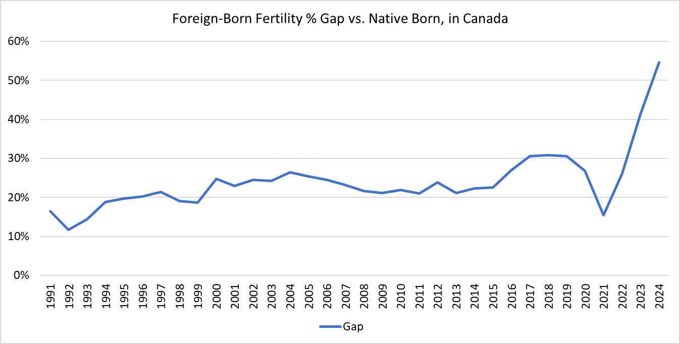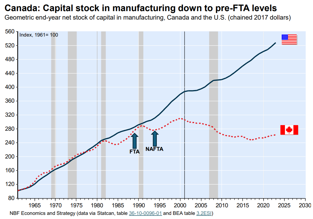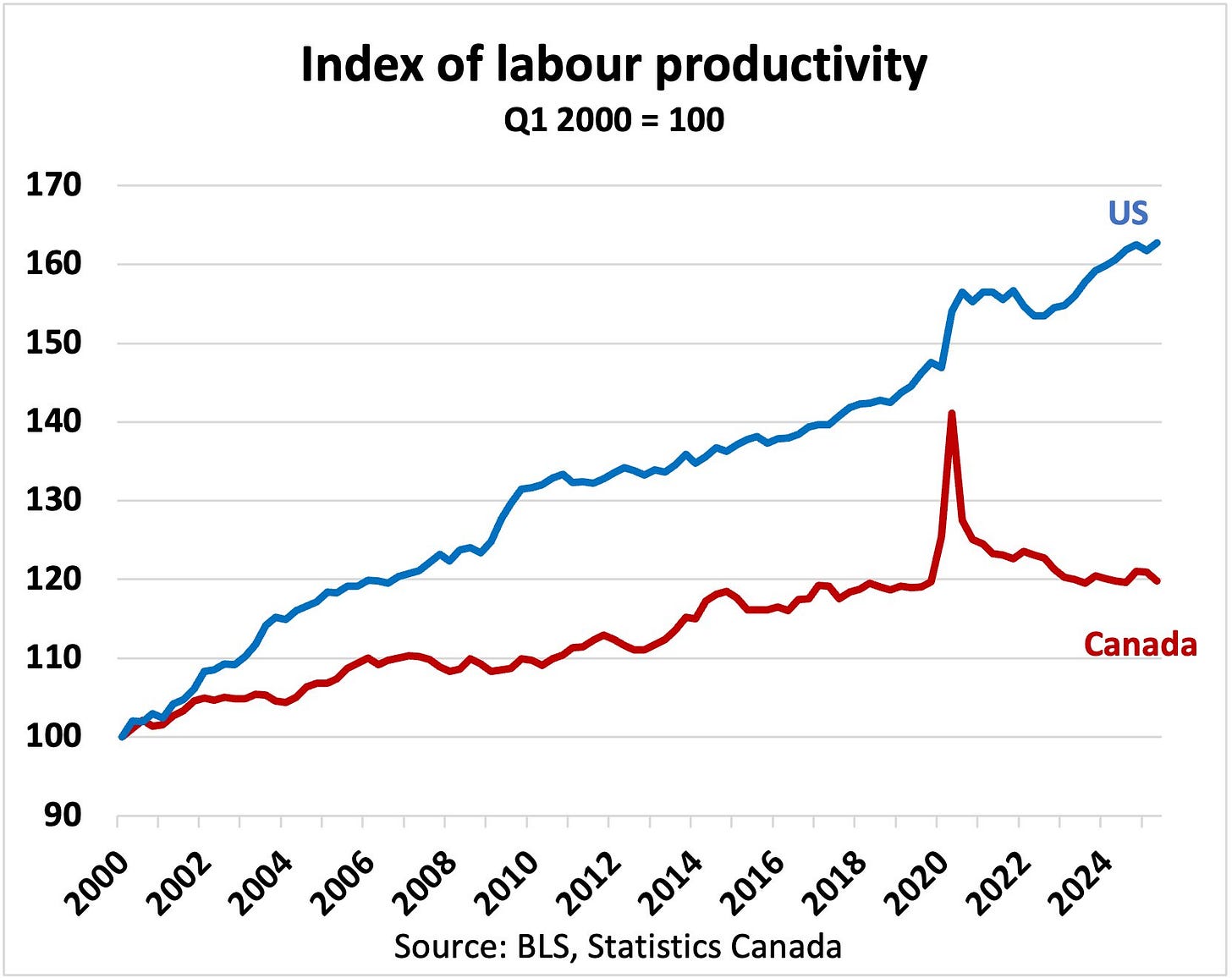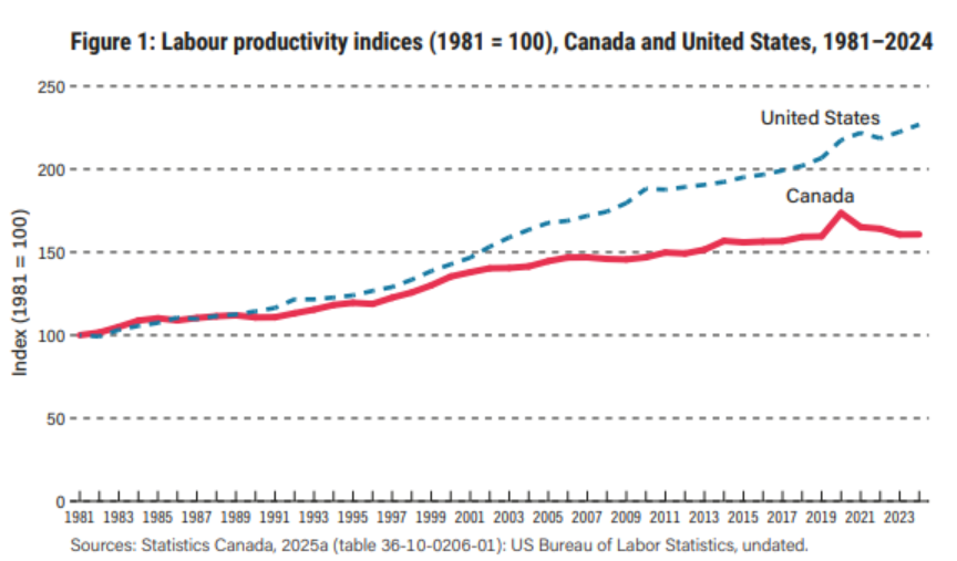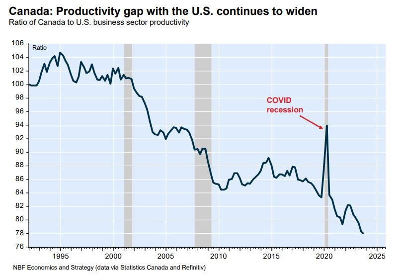 Largely as a result of importing millions of low-wage, low-skilled, low-human-capital immigrants, Canada’s productivity has lagged behind the United States.