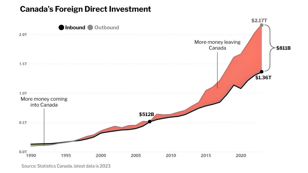 To put that in perspective, Canada’s economy is roughly one-tenth the size of the United States. A simple way to scale the impact is to multiply Canadian figures by ten.