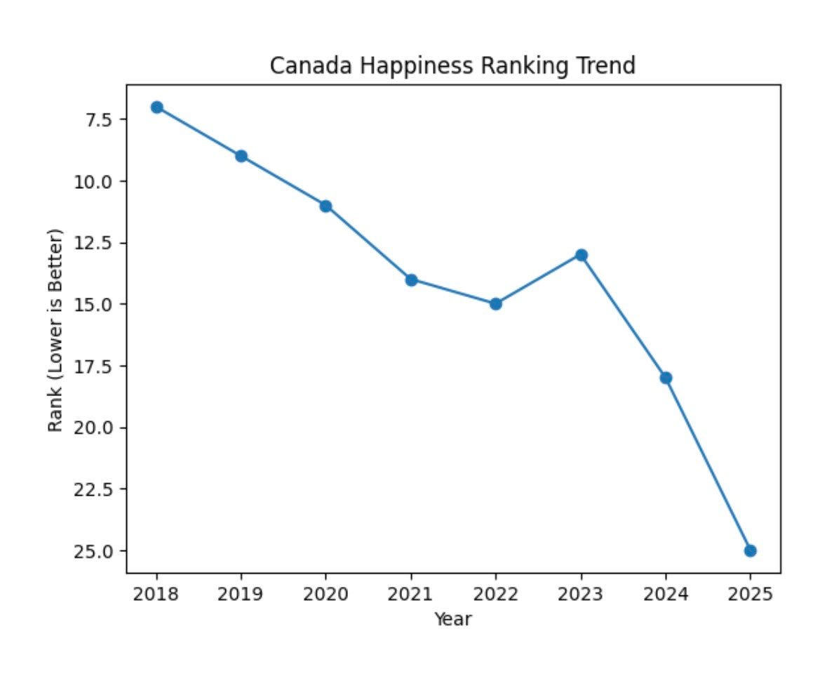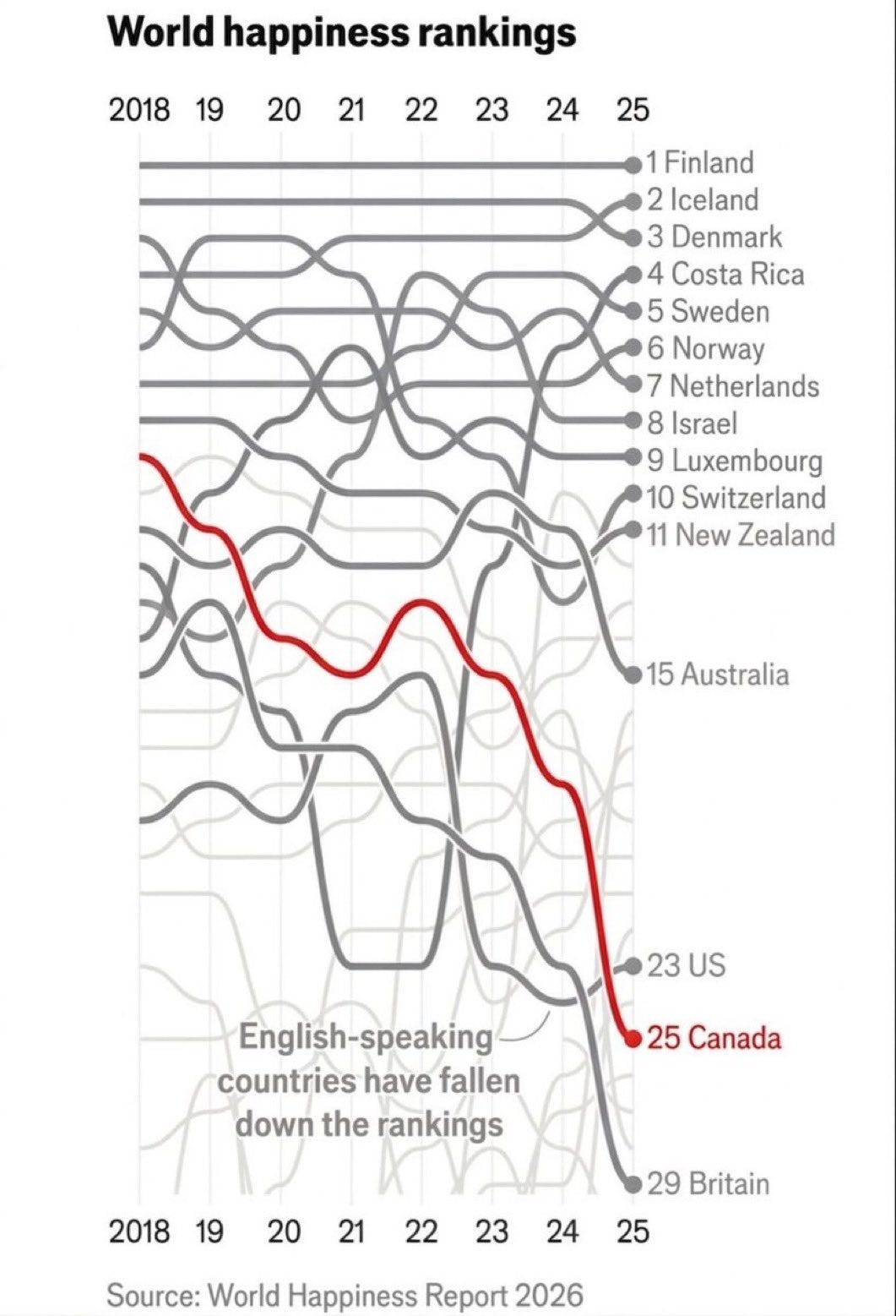Over the past decade Canada has dropped from one of the world’s happiest countries to 25th.