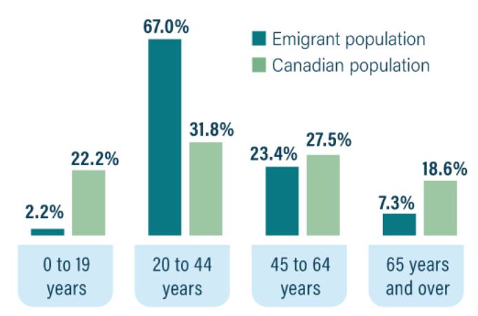 According to Statistics Canada, 67% of emigrants are between the age of 20-44…