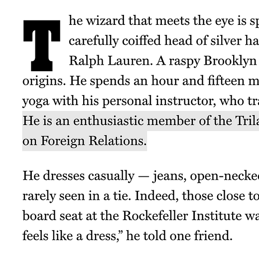 The New York Times says that Paul Singer is "the top source of contributions" to the National Republican Senatorial Committee. That means if Singer wants something, he gets it. Just like it would be nice for Mike Pompeo to have a handpicked CIA asset in congress, it would be nice for Paul Singer to have a handpicked Free Beacon alum in congress. So Singer calls up his Pompeo, McCarthy, Stefanik, Hogan and asks for a favor — endorse this wunderkid! He’s a wunderkid! They agree because they want Paul Singer’s money.
