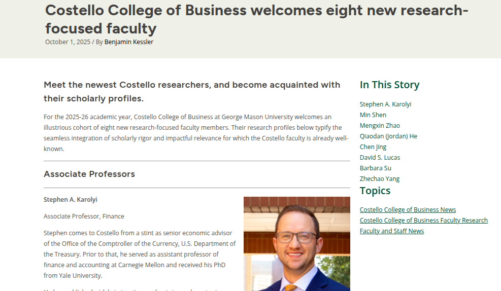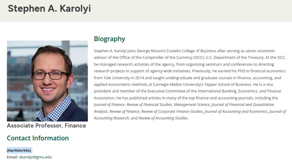 But the timeliness is what makes it relevant: as of last month, Stephen Karolyi has now returning to academia, moving from the Office of the Comptroller of the Currency to tenure at George Mason University’s business school.