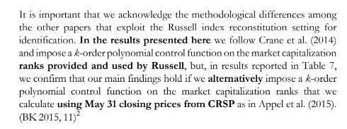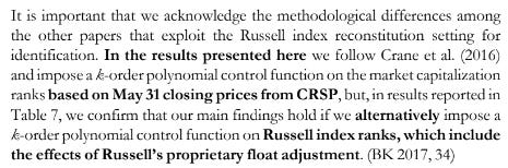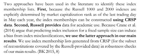 Using the data and code provided by the authors, Review of Financial Studies determined that two versions of this paper used different market capitalization rankings (Russell vs. CRSP), yet somehow produced identical results.