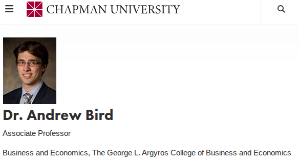 Andrew Bird downgraded from Carnegie Mellon to Chapman University.