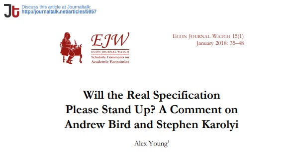 One month later, in January 2018, Young published a devastating takedown in EconJournalWatch.