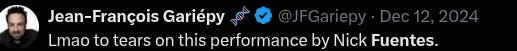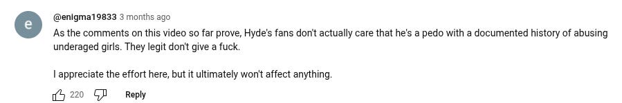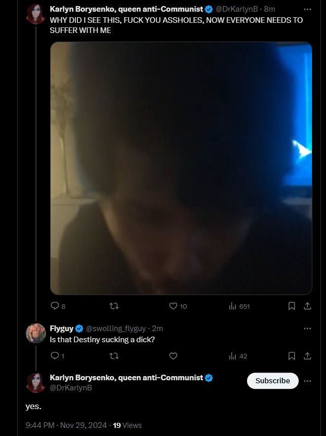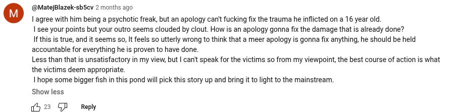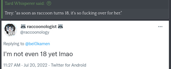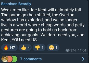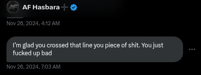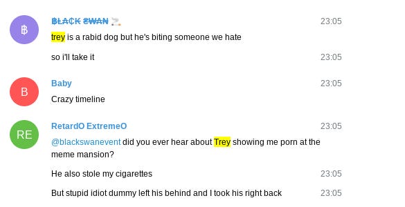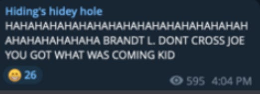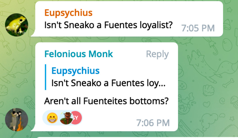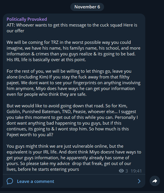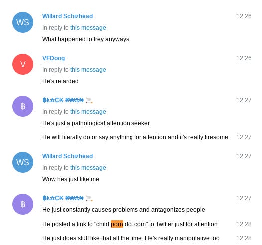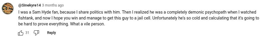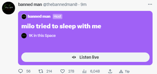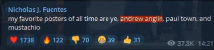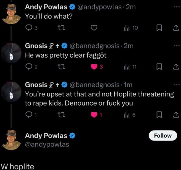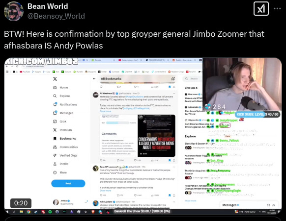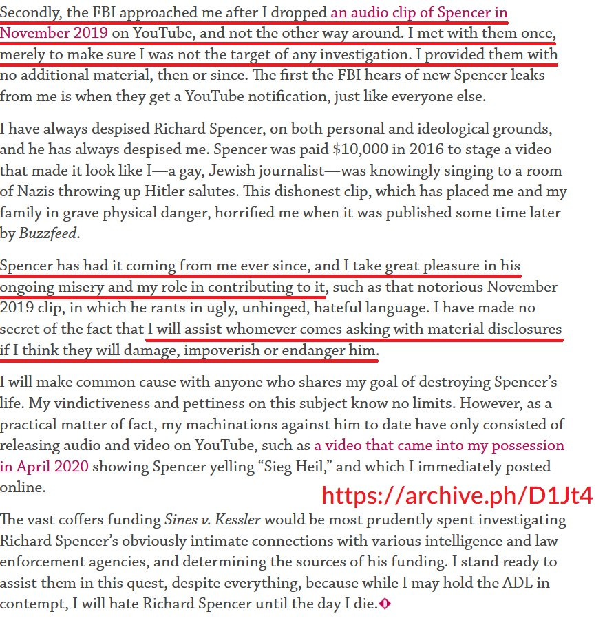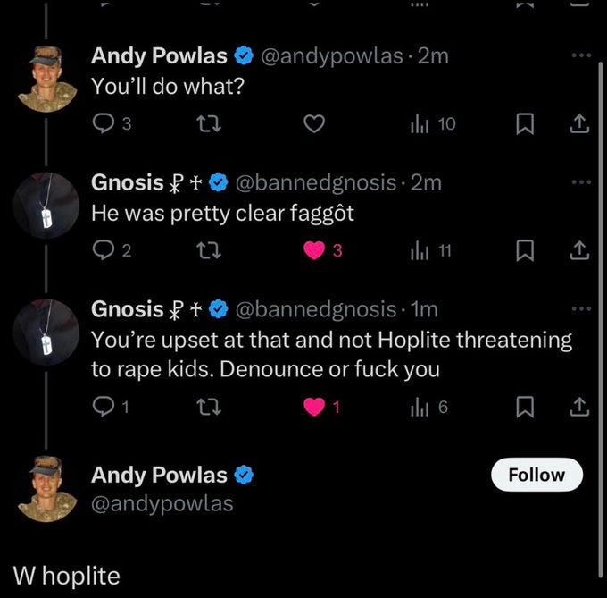It makes me extremely sad to see more young boys jump on his movement and repeat his lies, even though it’s going to fuck up their lives, just like that one kid that took advice from Nick Fuentes. And I feel kind of powerless to stop that, to help people who I know are going to get fucked over by trusting this federal fucking asset, this traitor—this traitor who has committed treason against his own people, his own fucking supporter base, never mind his movements or his race or his country. He’s committed the worst thing you could: he knew he sold out his own people, the people that still fucking listen to him and have listened to him for years.’’