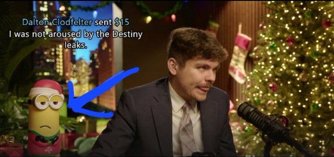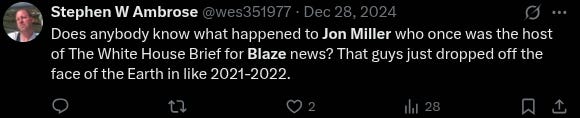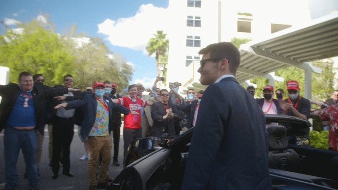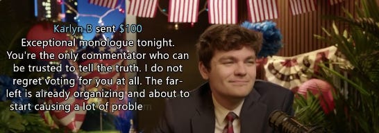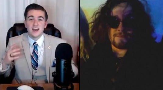 ‘‘I had a guy write me an email years ago. He had just gotten out of prison. He was a Groyper, and he was at Nick Fuentes’ rally on January 6. And, uh, he had just been convicted. He was now a registered felon a full year in prison January 6-related charges. And his life was ruined. His family was from the Arlington region. They were well, he had been ostracized from his entire family. And he couldn’t get a job anymore because he was a felon. And he was despondent over his life because being a felon is a big deal. You can’t own guns, you can’t vote. It follows you around. It impacts every single facet of your life. You can’t travel. It’s like—like, he doesn’t even have the option to leave the U.S. and go hide in Argentina because they don’t want a felon. He was despondent, he wrote me was asking for advice on, “How do you choose to be happy even though you’re kind of like this weirdo without much money, living in the middle of nowhere by yourself?”