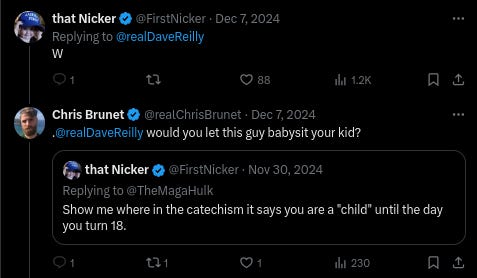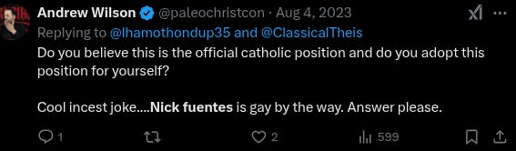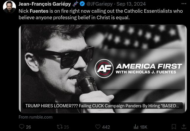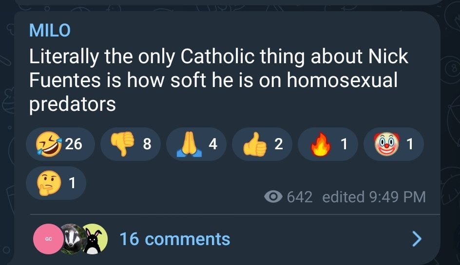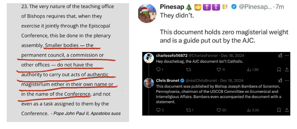 Groyper lieutenants echoed Nick’s cope about the USCCB having no authority, positioning themselves as experts on magisterial authority.
