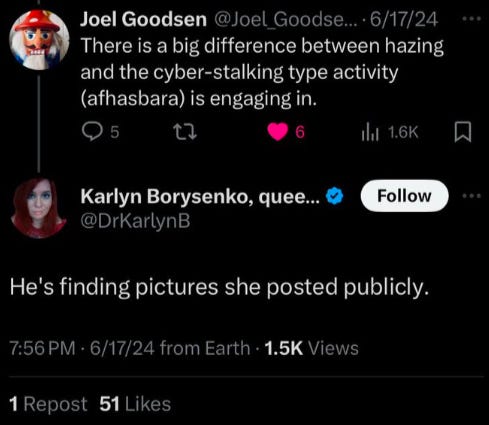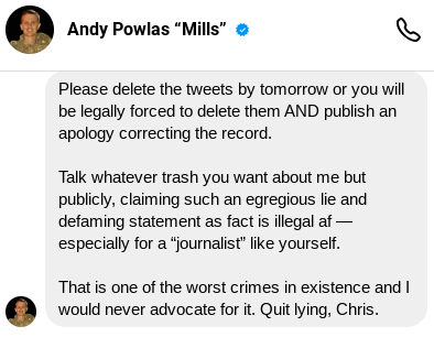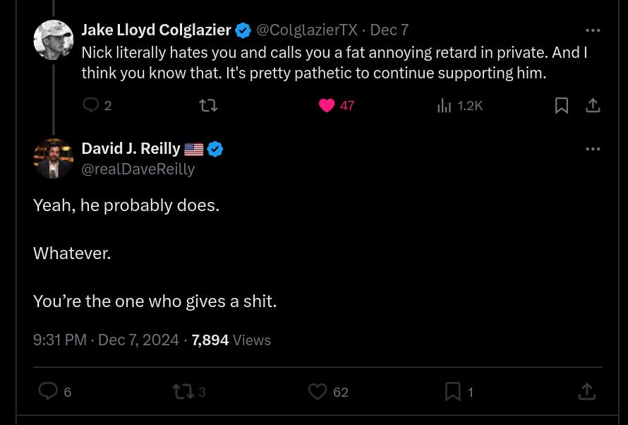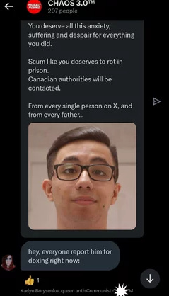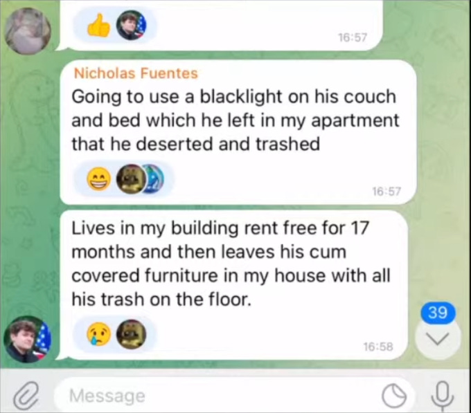 Nick brags about doxxing a working class electrician and mocks him for being “poor’’: ‘‘We literally doxxed him’’