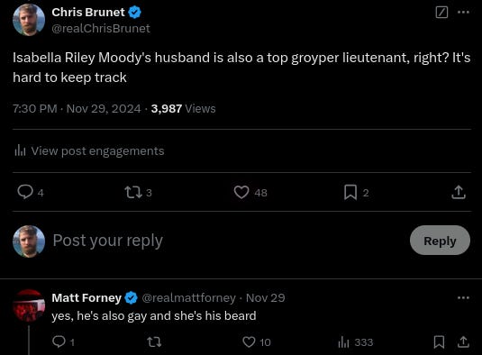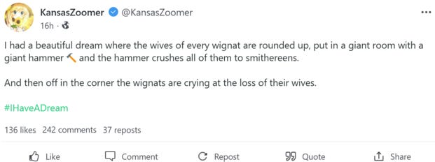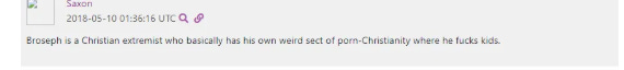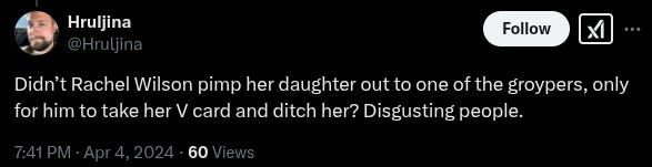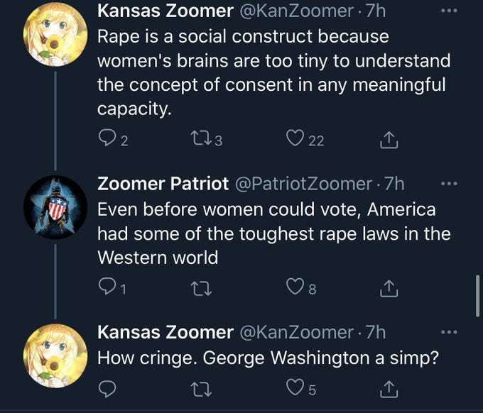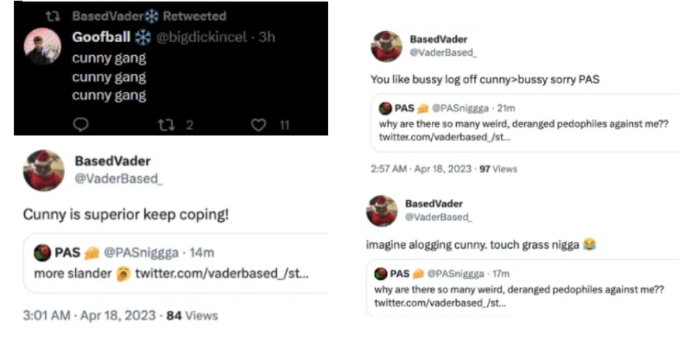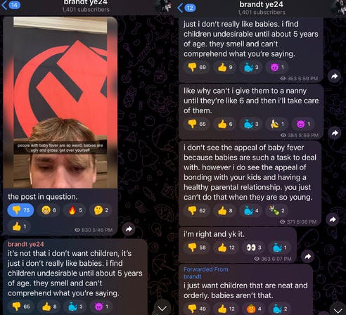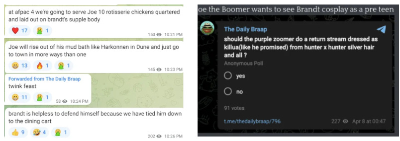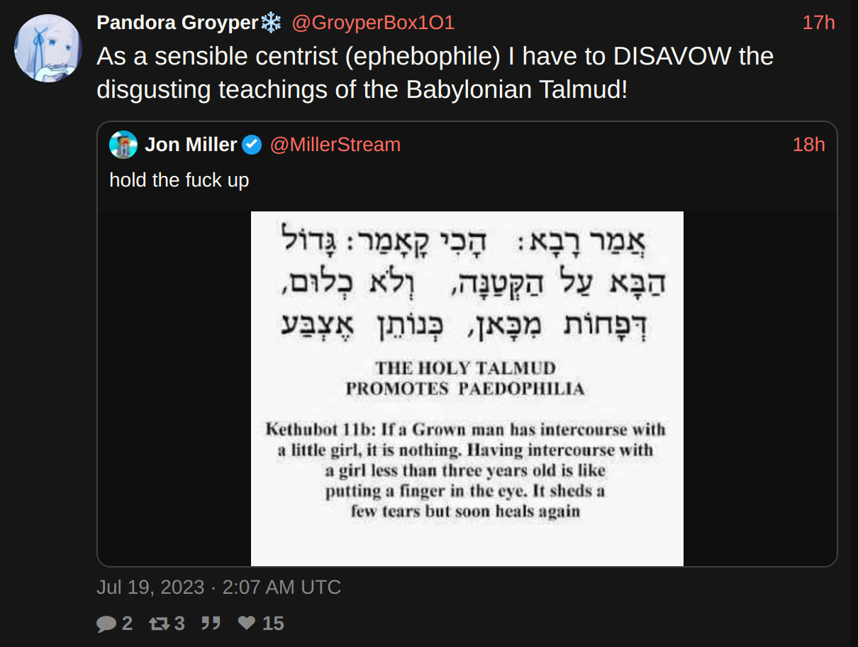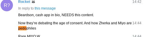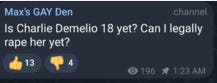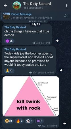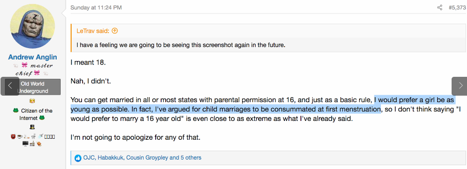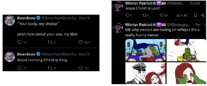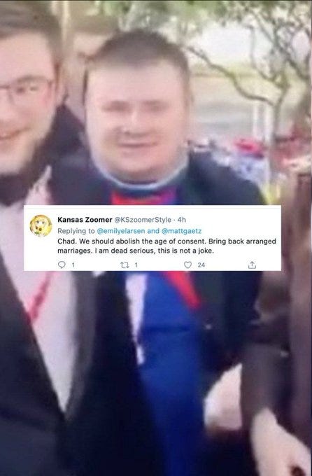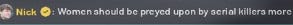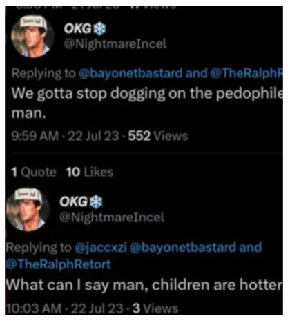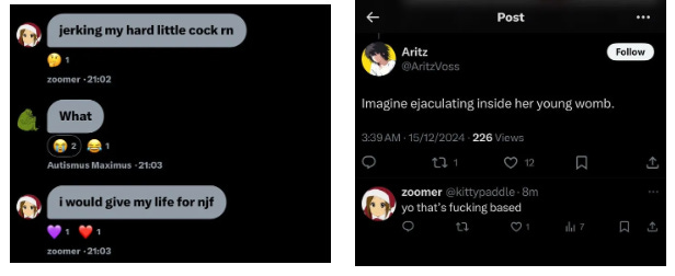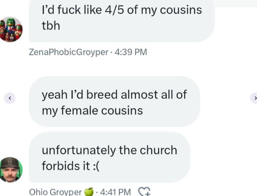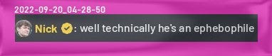 Nick’s followers, such as "Child Bride Groyper" mimic their leader and started posting about how ‘‘pedophilia is natural and normal … how old was Mary when God groyped her by the cunny?’’