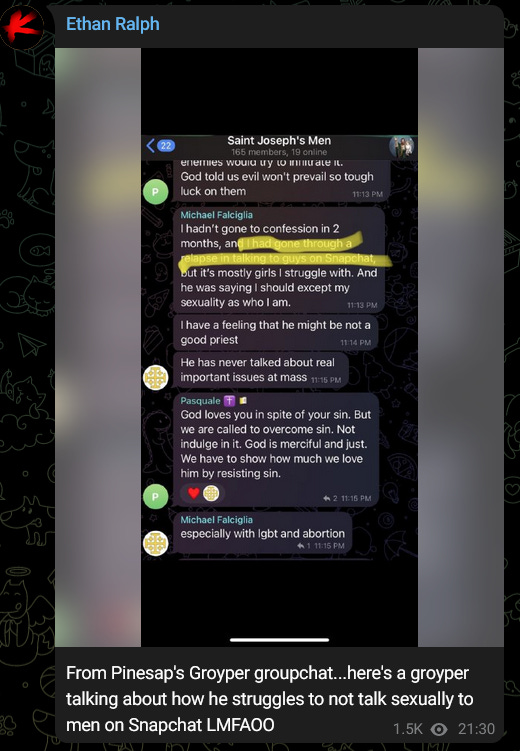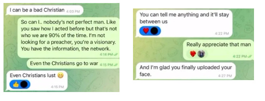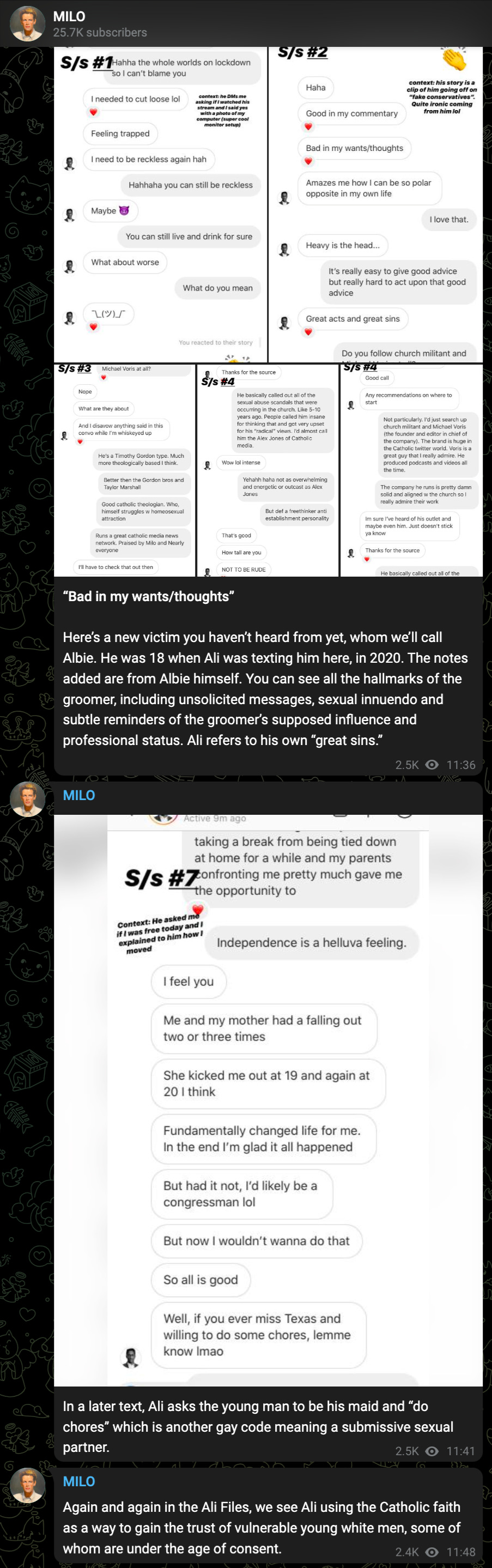 Ali appears to have a ‘‘kink’’ for corrupting young Christian boys in particular. In separate leaked Telegram messages, Ali confesses, “I can be a bad Christian … even Christians lust,” before pressing a boy to “upload his face,” assuring him, “You can tell me anything, and it’ll stay between us.”