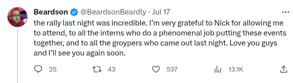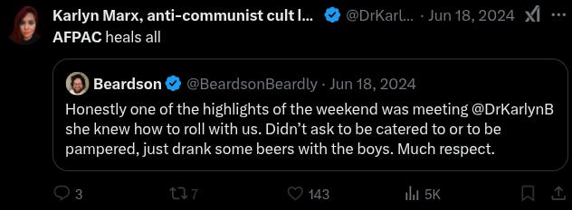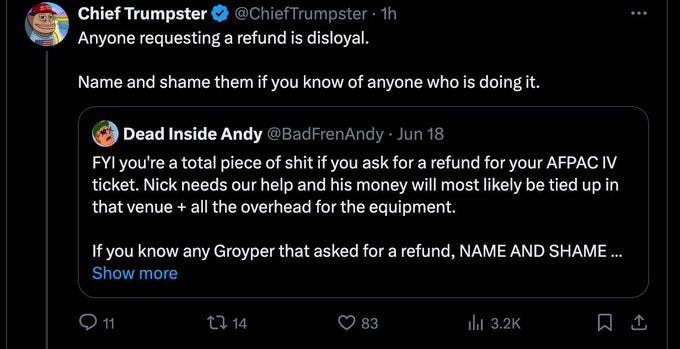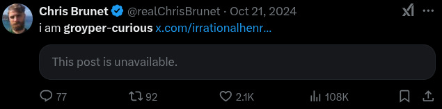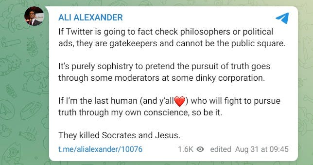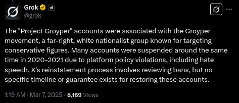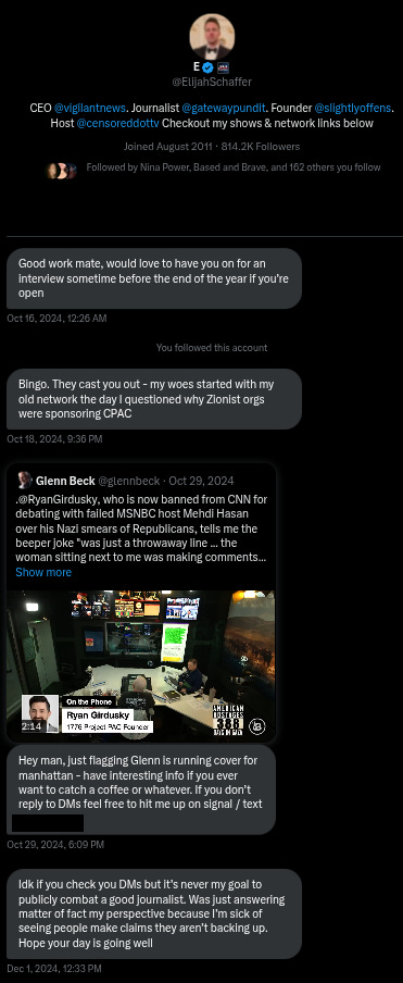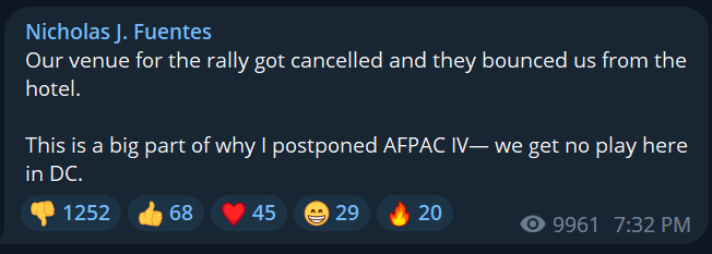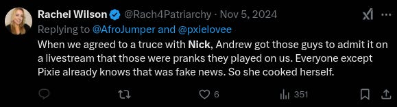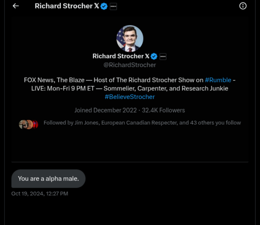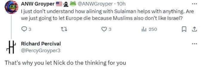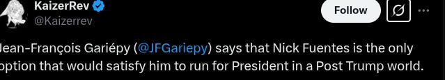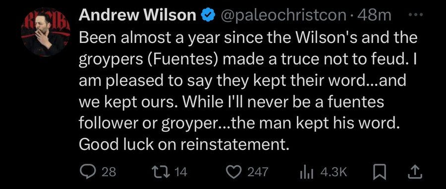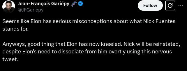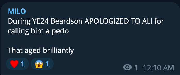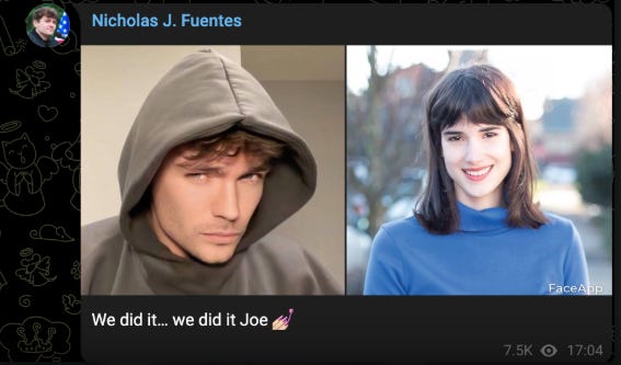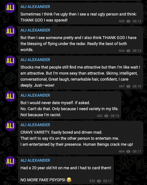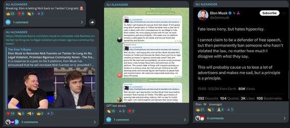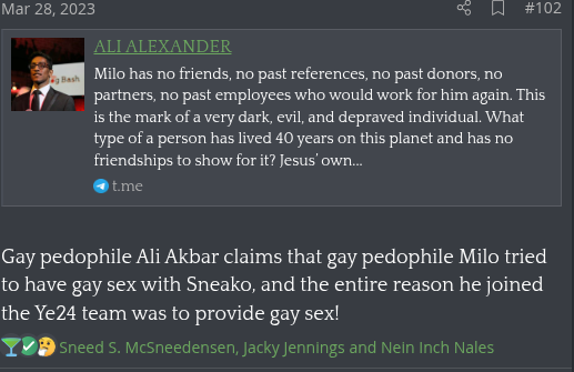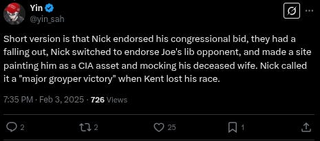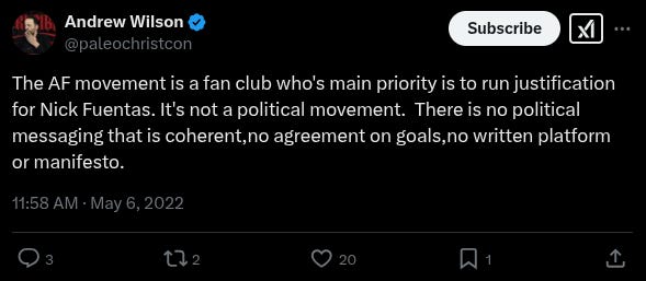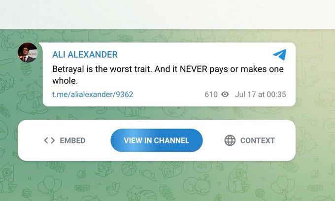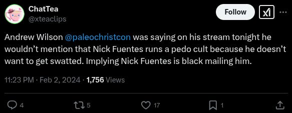 In 2024, after Nick’s X ban was lifted, Ali Alexander was spotted in the main Groyper group chats celebrating with them.