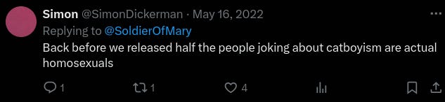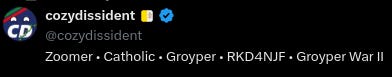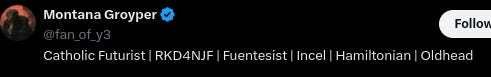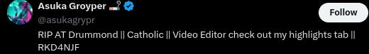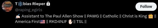 Let’s isolate ‘‘Asuka Groyper,’’ a top Groyper lieutenant with ‘‘RKD4NJF’’ & ‘‘Catholic’’ in his bio.