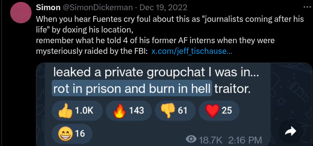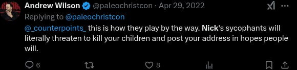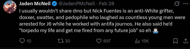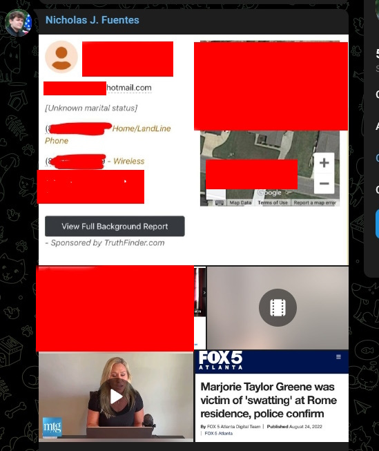 In this article I’ve already documented dozens of examples of Nick Fuentes doxxing and swatting his enemies while inciting his followers to do the same.