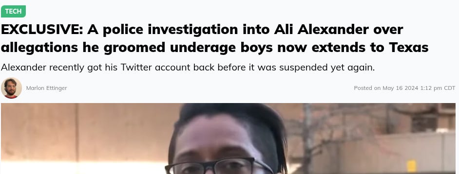 The last substantive update on Ali Alexander, before today, was from May 2024.