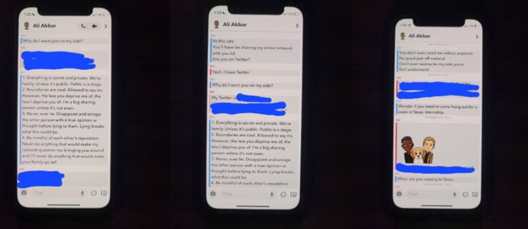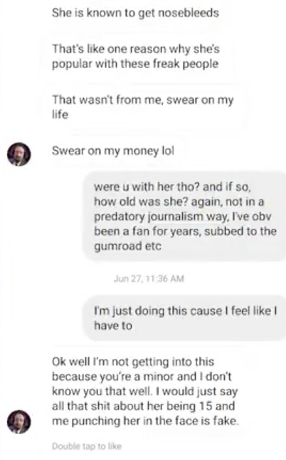 Here are screenshots of a different 17-year old declining Ali’s offer of money in exchange for shirtless pictures.