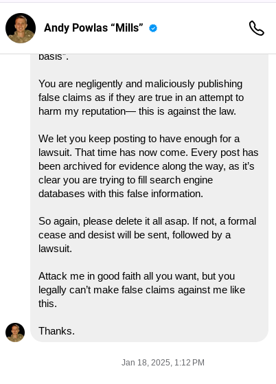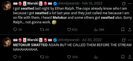 After she was swatted, Andy Powlas (#4 on today’s list), told her, “Fuck around and find out.” Did Andy swat her? Does he know who did?