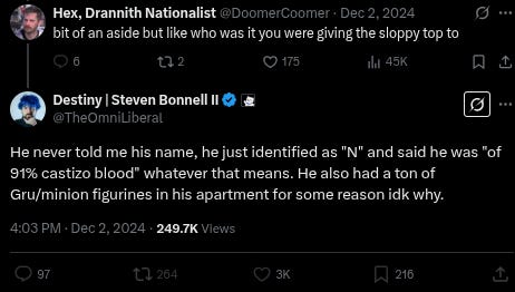 One of the most baffling aspects of dating Zach was his fixation on preserving the “white race.” As a Latina, I was confused as to why he was even dating me. He justified being with me because genetically I was more European than indigenous, similar to Nick Fuentes. He openly told me I wasn’t white enough to have children with because he needed to “preserve his race,” yet he also believed white women to be obnoxious, promiscuous, and preferred to date black men over white men.