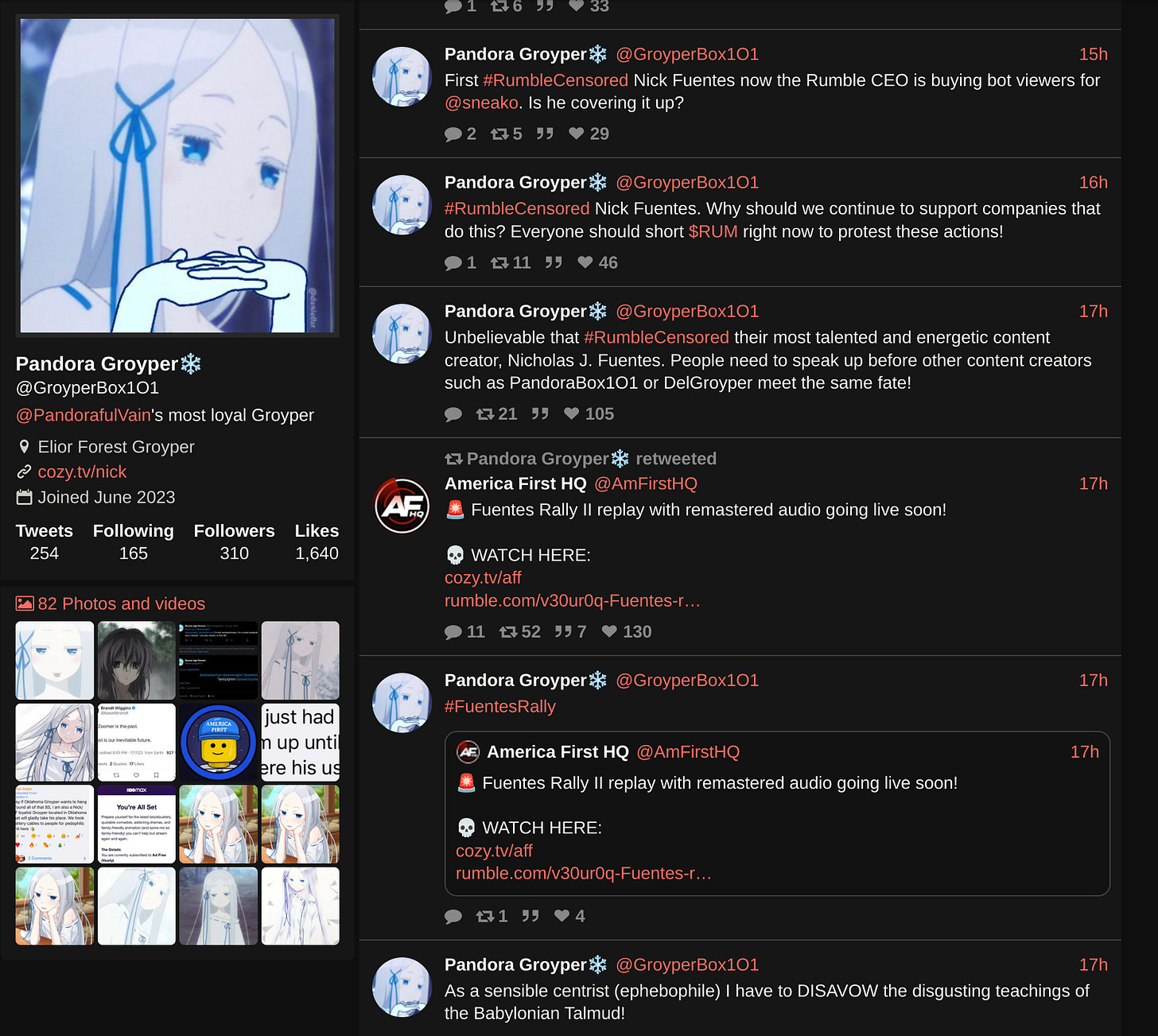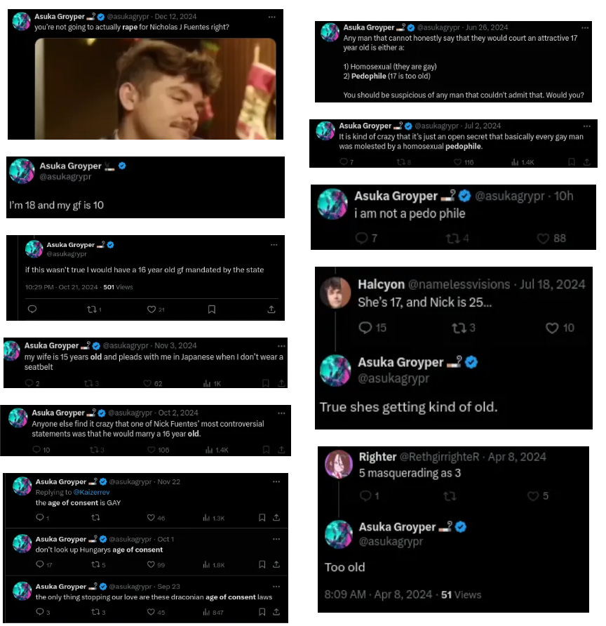 Asuka Groyper’s tweets are mostly about pedophilia & ‘‘raping for Nick Fuentes.’’