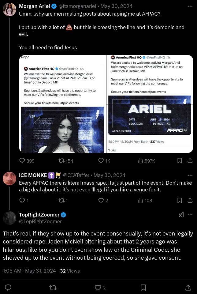 Groypers threaten to rape Morgan Ariel’s daughter and then dox her home address with Nick’s approval