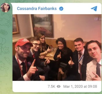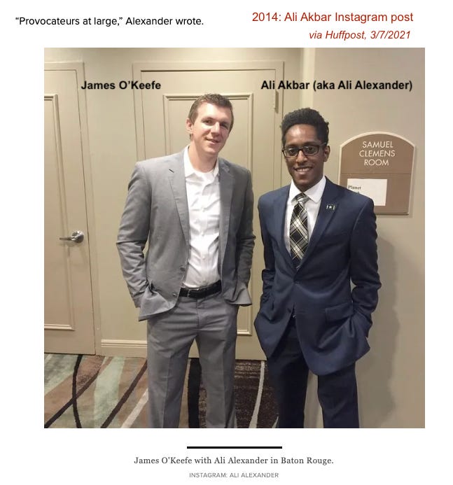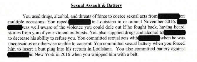 ‘‘Later, around October 2016 in New York City, I endured further abuse. After being introduced to James O’Keefe and Laura Loomer at O’Keefe’s offices outside NYC for a debate watchpart, we stayed with a colleague of Ali’s [who] used used a belt, at the instruction of Ali, to strike me with. Ali provided drugs and alcohol, and I suffered physical violence.