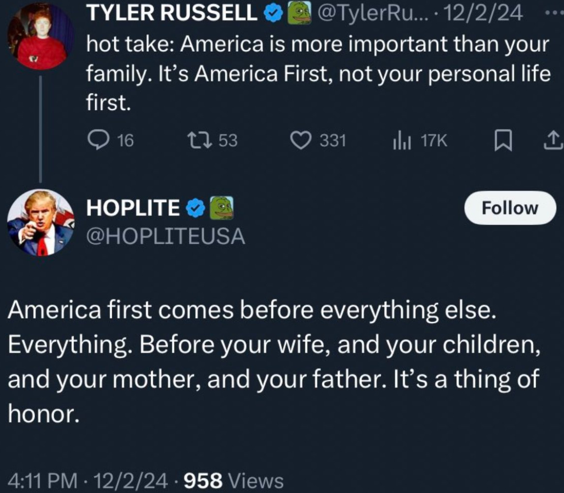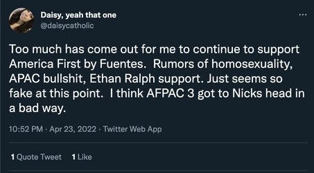 As someone who values tradition, conservatism, and faith, it’s heartbreaking to see these ideas weaponized in such a demonic way. America First is completely anti-catholic, crossing into hatred, pedophilia, and hypocrisy. It cloaks itself in religion and tradition, making it harder for outsiders to recognize the danger of this online cult.