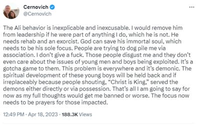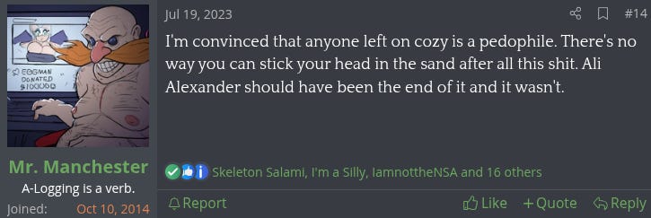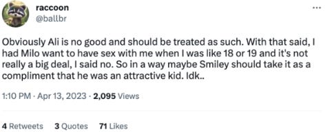 From 2017-2023, Nick let the Ali problem metastasize, promoting and protecting him at every turn, giving him a Cozy show and access to unlimited middle and high school boys.
