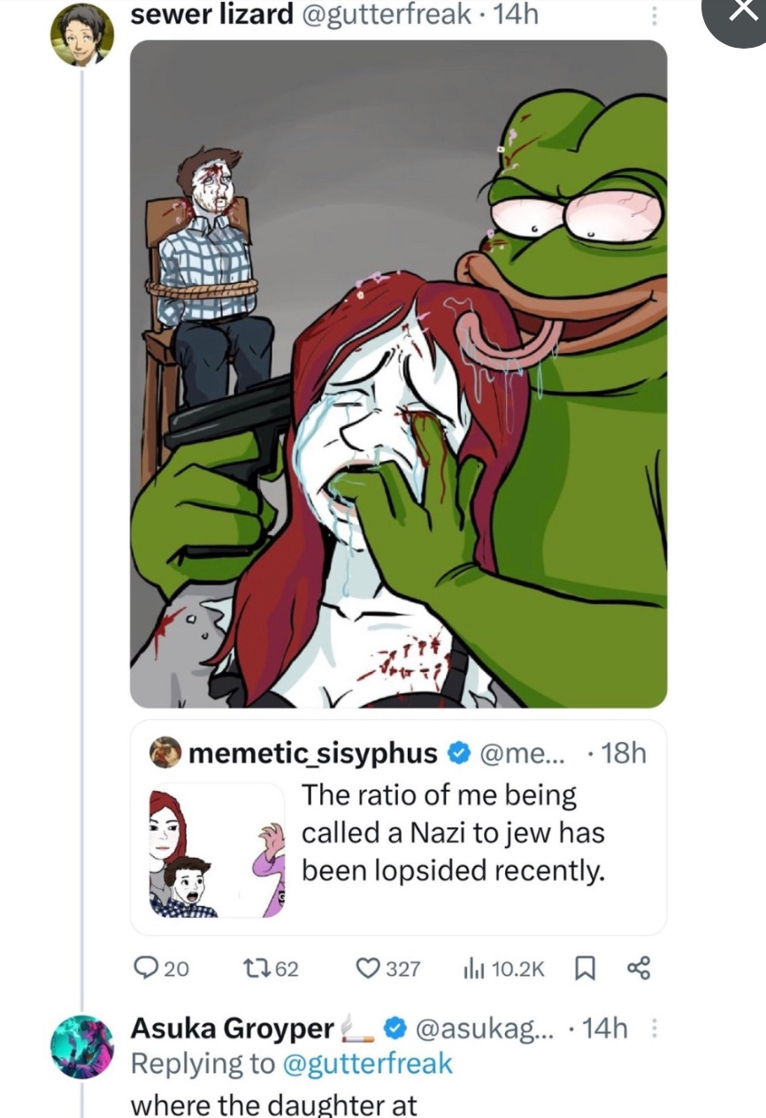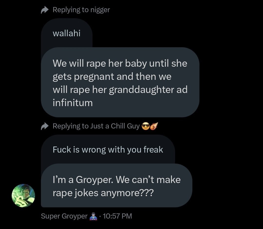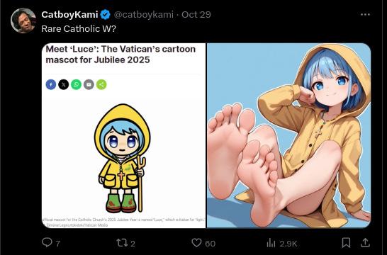 Hundreds of Groypers like Asuka Groyper hijack the Catholic faith because they think it’s funny to flood the public square with rape, pedophilia, and gore while displaying the Vatican flag in their handle. This so-called ‘‘ironic joke’’ serves as a signaling mechanism for sociopath pedophiles to wink at one another under the false impression they are being clever.
