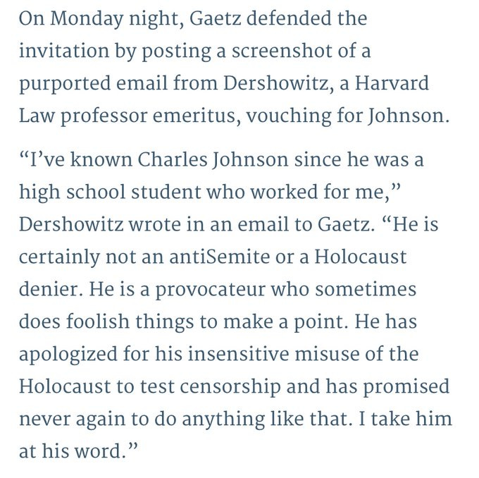 [The target], who is now 21 years old and a high-profile America First supporter, confirmed their veracity and the facts of our story, including his age at the time the offenses were committed.