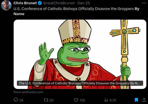 Chris Brunet: What would you say to Nick’s argument that the USCCB's guidance on the Groypers should be ignored because it holds zero magisterial weight?