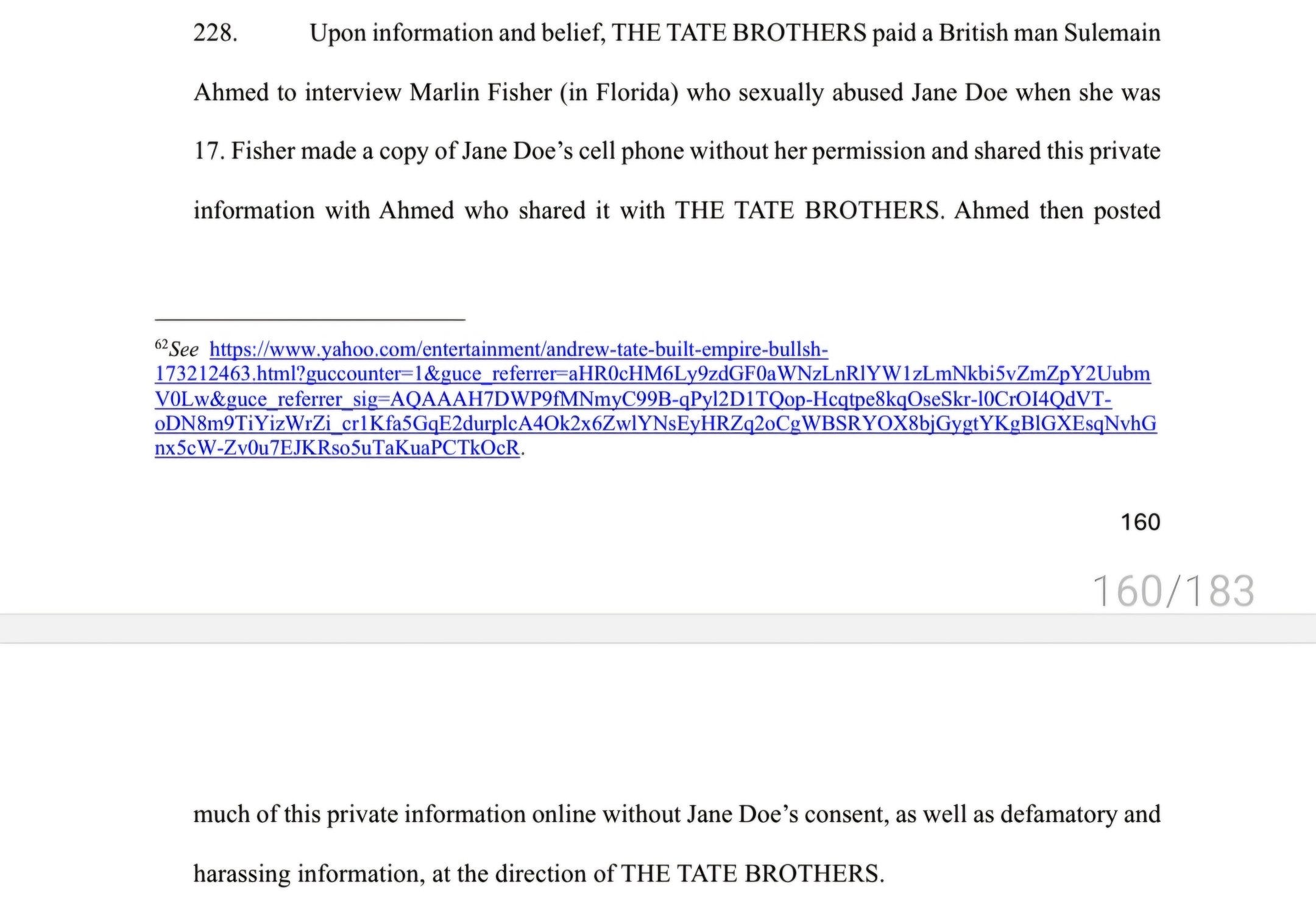 ‘‘Your relationship with Ali Akbar was concerning to me from the beginning and as your presumptive business manager- I warned you that doing business with Ali would not be in your best interest. Despite these warnings, you were confident that Ali would only be managing your online presence however this has proven to be yet another fabrication.