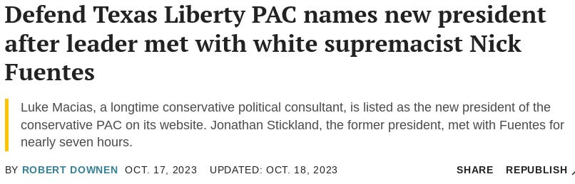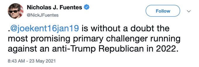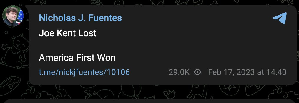 ‘‘Far-right agitator Nick Fuentes was responsible for tanking the congressional campaign of Trump-endorsed candidate Joe Kent, a former U.S. Green Beret and Gold Star Spouse.’’