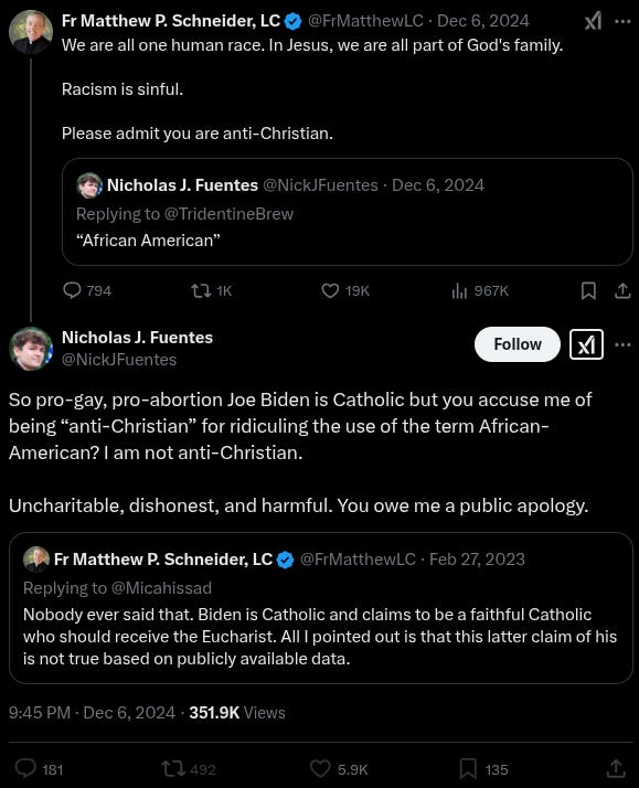 I contacted Father Schneider specifically because, in a particularly ugly episode in December, Nick instructed his Groyper army to dogpile him.