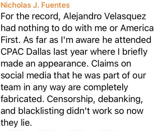 ‘‘While claiming he was placed on the US government’s No Fly List for his political views, Fuentes was, in fact, added to the list for threatening, on video, to strangle flight attendants.’’