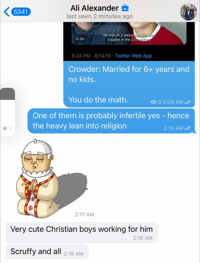Ali Alexander is shown here lusting after the “scruffy and all … very cute Christian boys” working for Steven Crowder.