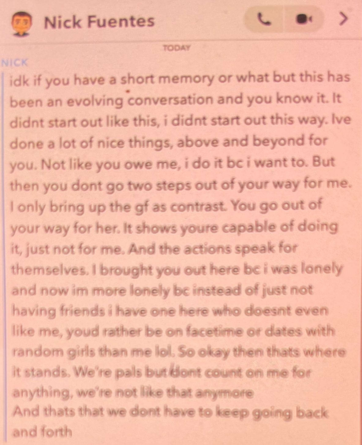 On our dates he would love to get fast food and would call it “goyslop.” As someone who prioritizes health and fitness, I was quite upset when Zach would quote Nick on how lifting is unnecessary and fast food was great. Despite his gluttonous lifestyle, he would make fun of overweight people often.