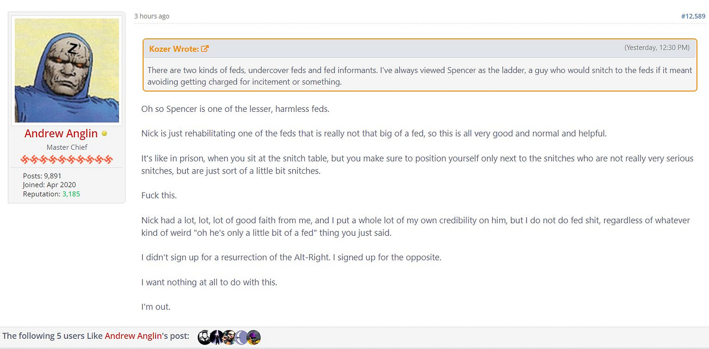 The owner of that forum, Joshua Moon, made a video about Nick being a fed.