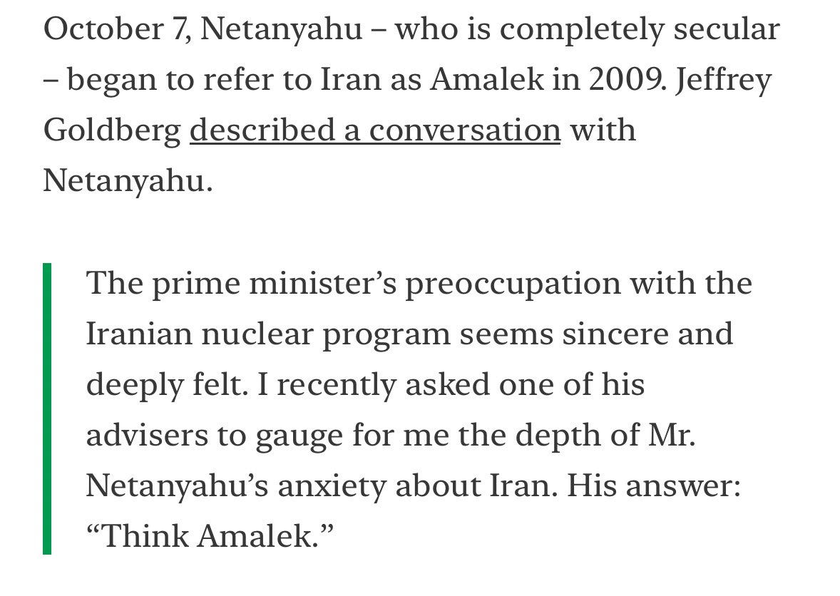 So, it matters very much if Iran is Amalek.
