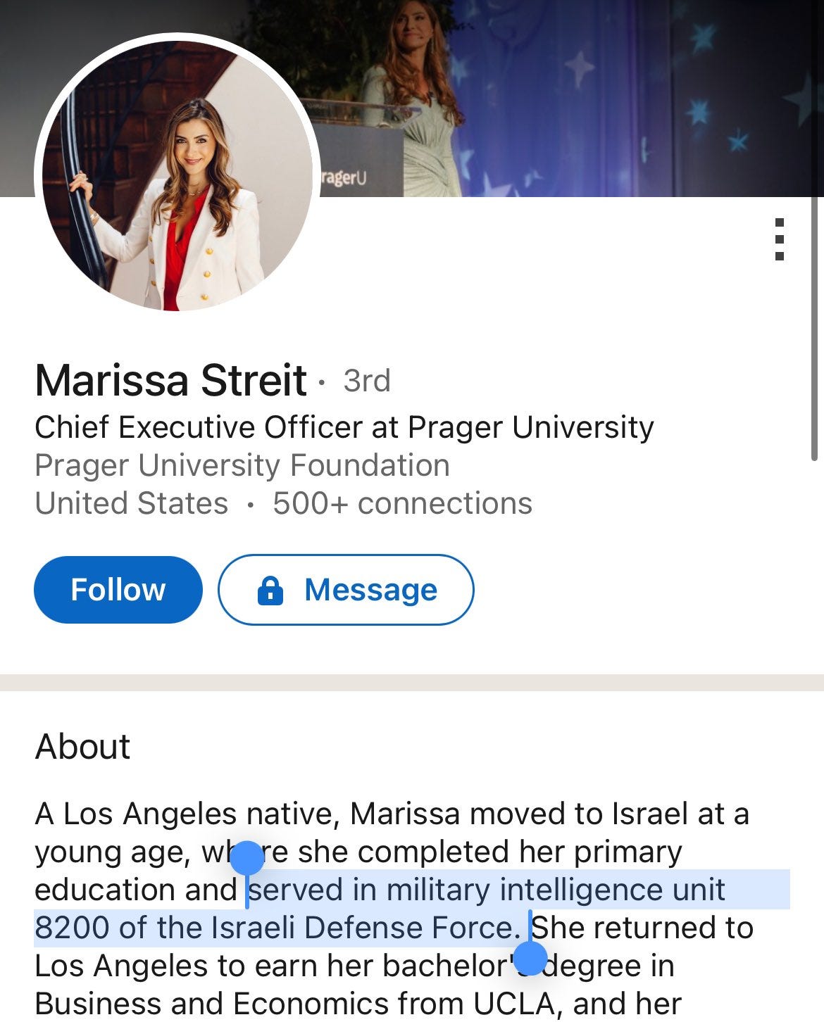 After Aish HaTorah, Kestenbaum attended Harvard Divinity School in 2024, where he became famous for suing Harvard. He now works at Prager U, whose CEO Marissa Strelater, served in the IDF’s Unit 8200.