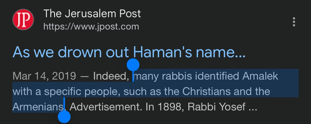 Israeli politicians and rabbis have variously applied Amalek to Palestine, Iran, Germany, Lebanon, Syria, Rome, “Spiritual Rome”, Armenia, Qatar, all Christians, all Muslims, all Arabs, or all Gentiles. Really, it’s whoever Israel happens to be fighting at any given moment.