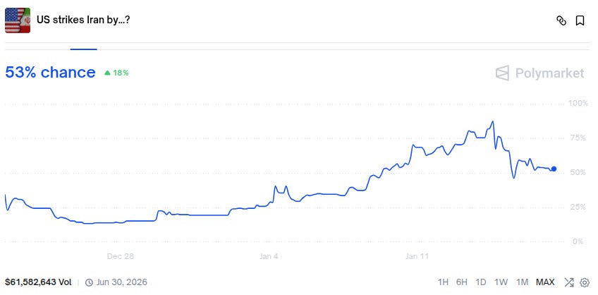 That Amalek rhetoric is not academic. Polymarket currently assigns a 53% percent probability that the United States will strike Iran before summer is over.