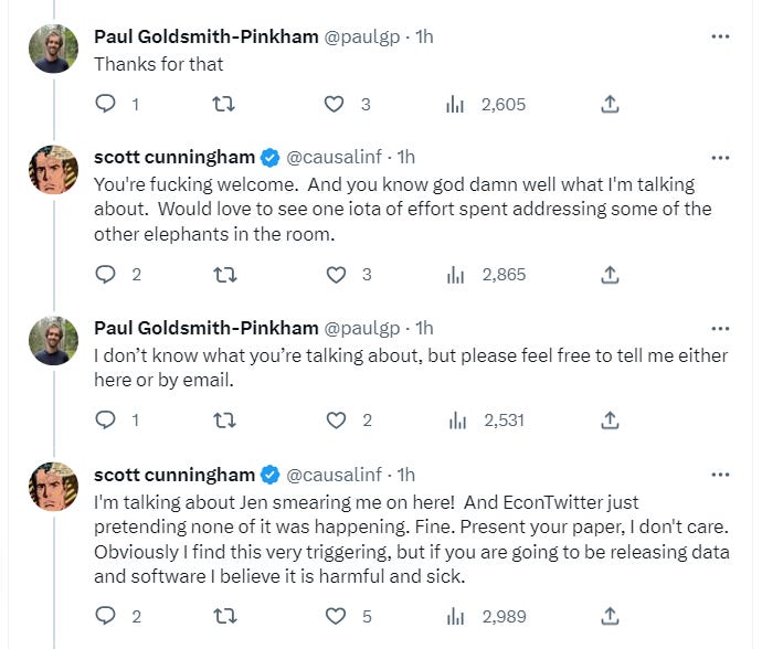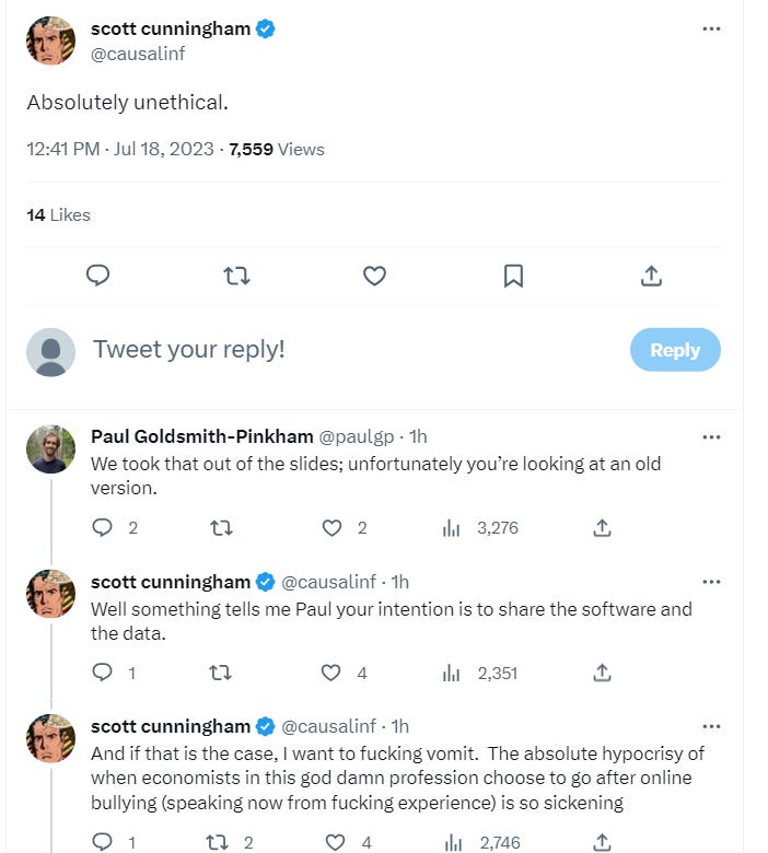 The leaked slides/paper has just started going viral on Twitter, the first grumblings are starting to come out, soon it will be huge. The most notable tweet so far is Scott Cunningham, professor of economics at Baylor University, who is extremely pissed: